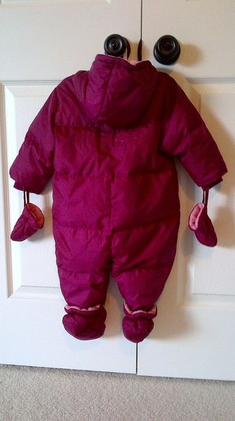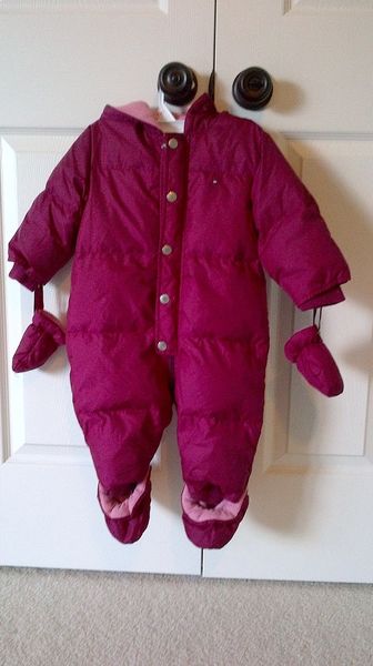 TOMMY HILFIGER 1 PIECE DOWN SNOWSUIT: Size 12-18 months, in brand new condition, 50% Down-Filled Fleece Lined with hand and feet covers.