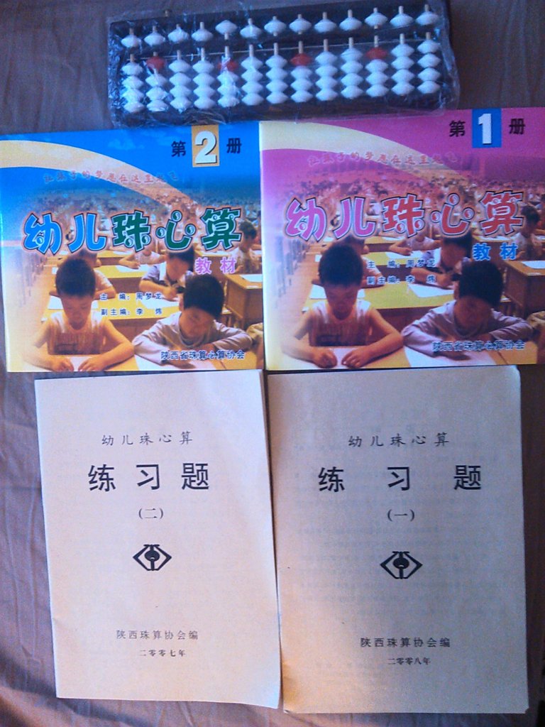 3. 幼儿珠心算(对开发小孩子左右脑非常有帮助)包含2本练习册,教材1.2册,简单易学,家长可自教。带算盘。