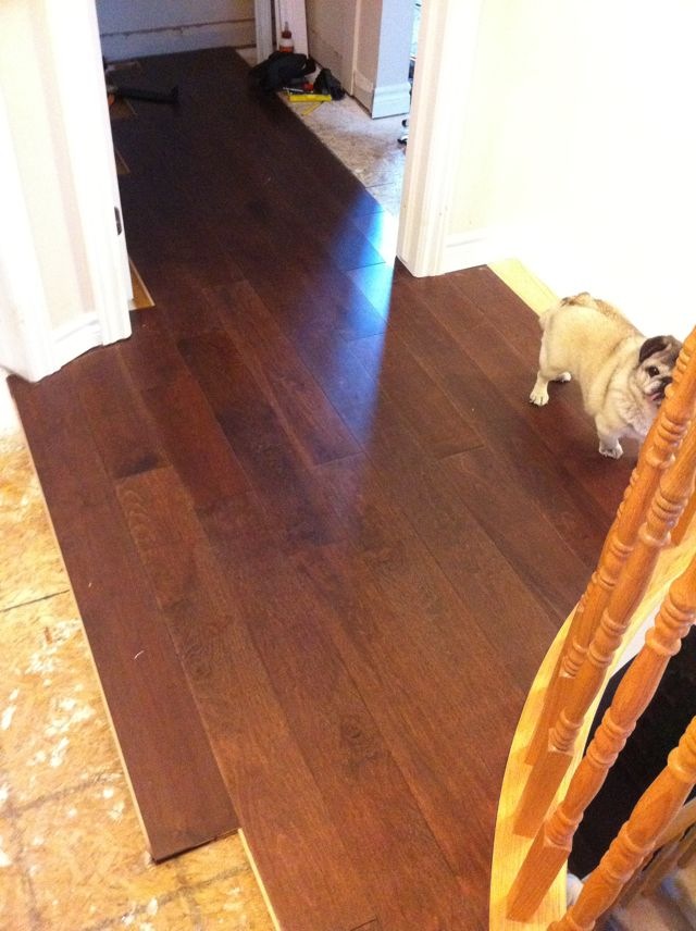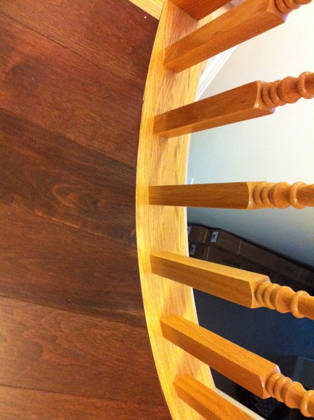 1,用纸做模板,然后拓到木头上,不过出来,误差还是比较大,因为2毫米的误差就会使地板和弧形弯有很大的缝隙,最后得用jig saw修来修去,非常费时间。