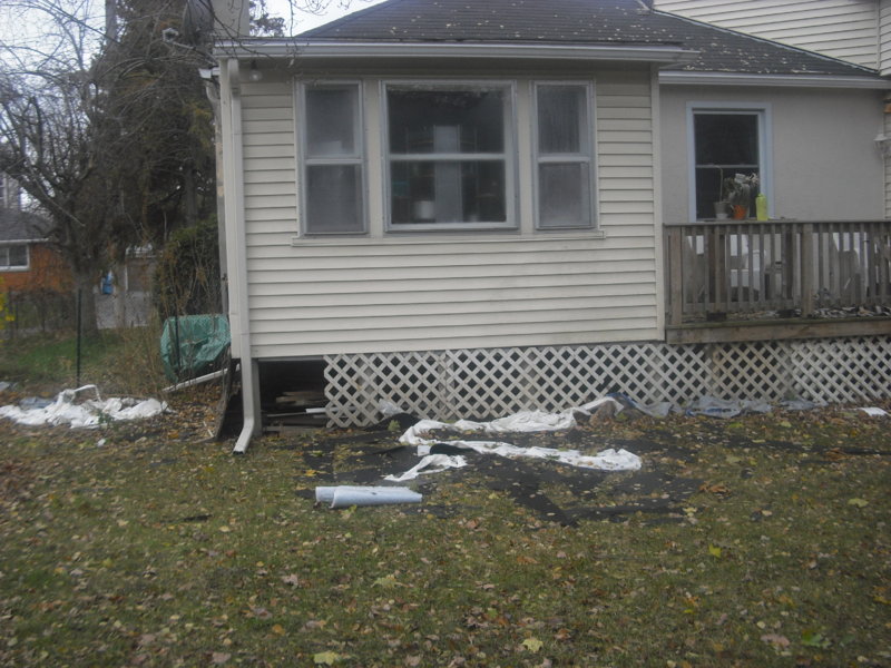 1. 原来的瓦片还在,上面盖上新瓦片. 下面不平,冬天积雪和冰水,和多余的重量, 屋顶很快就坏掉。这下面是图。