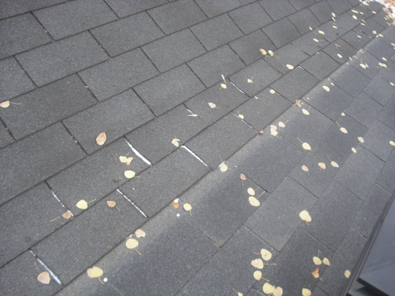 瓦片压住铁片,铁片露出越小越好--现在铁片16 .这个不是这样的。否则你看看所有的屋顶铁片都是要露出来的。否则就直接把铁片全盖住得了。我家房子换屋顶的时候我看见roofer还特地在上面用chaulk line 打出痕迹。