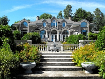 这座豪宅,有14,500平方英尺的居住面积,六个卧室,八个洗手间,占地1.5英亩,可瞭望美加 边境海湾美景。