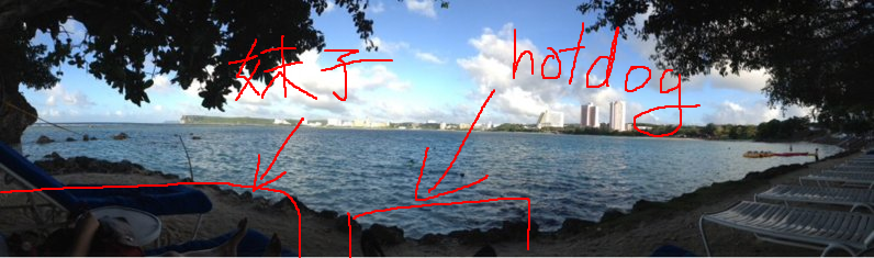这是一张panoramic shot,妹子就在他边上的椅子上,左右都没有人。要么就是“妹子”要么就是狗哥足够creepy, 这么大一排空的他非坐人姑娘边上