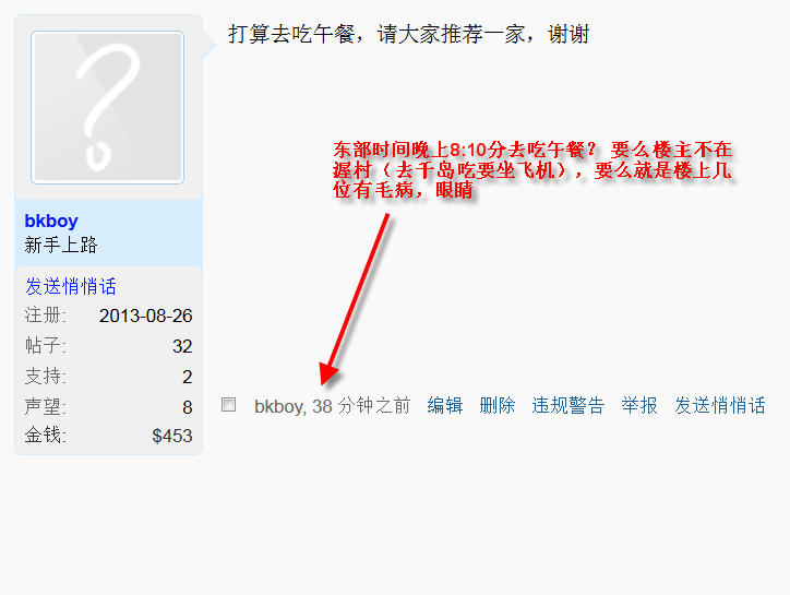 B bkboy 新手上路 注册 2013-08-26 消息 43 荣誉分数 3 声望点数 18 2013-11-30 #17 狗狗妈 说: 你是FBI呀?! 我想人家可能是去吃某一天的午餐。搞了半天也没人出个正经牌。 点击展开... heureux 说: 浏览附件381159 点击展开... 瑞皇威武,狗狗妈聪明,俺是想明天中午去