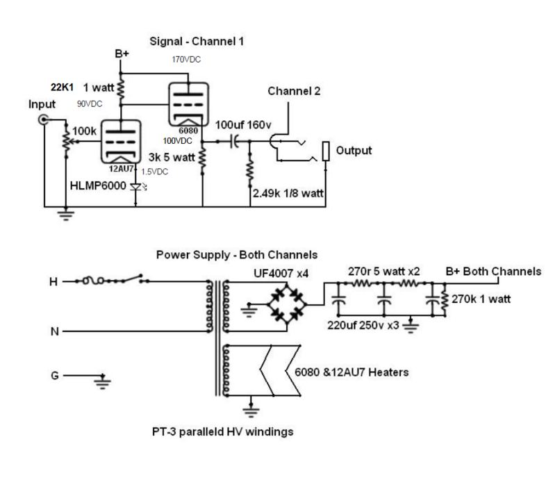 這圖紙應該是單聲道而不是雙聲道機,對嗎?最简单的两个是:微调一下两声道是否平衡,另外看一下标准信号下,开到多大开始失真,以后不要过那个点。才装好,先烧十几个小时吧,电子管不象集成电路,还是老化一下吧,可能现在出厂老话都不够
