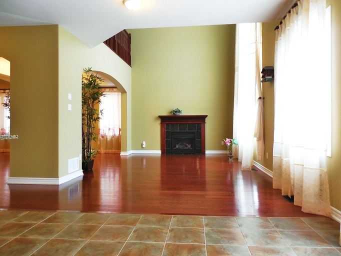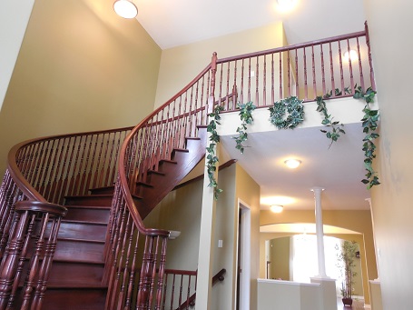 18英尺高的FAMILY ROOM,超高大圆拱窗, 沟通2楼的LOFT 和过道。
