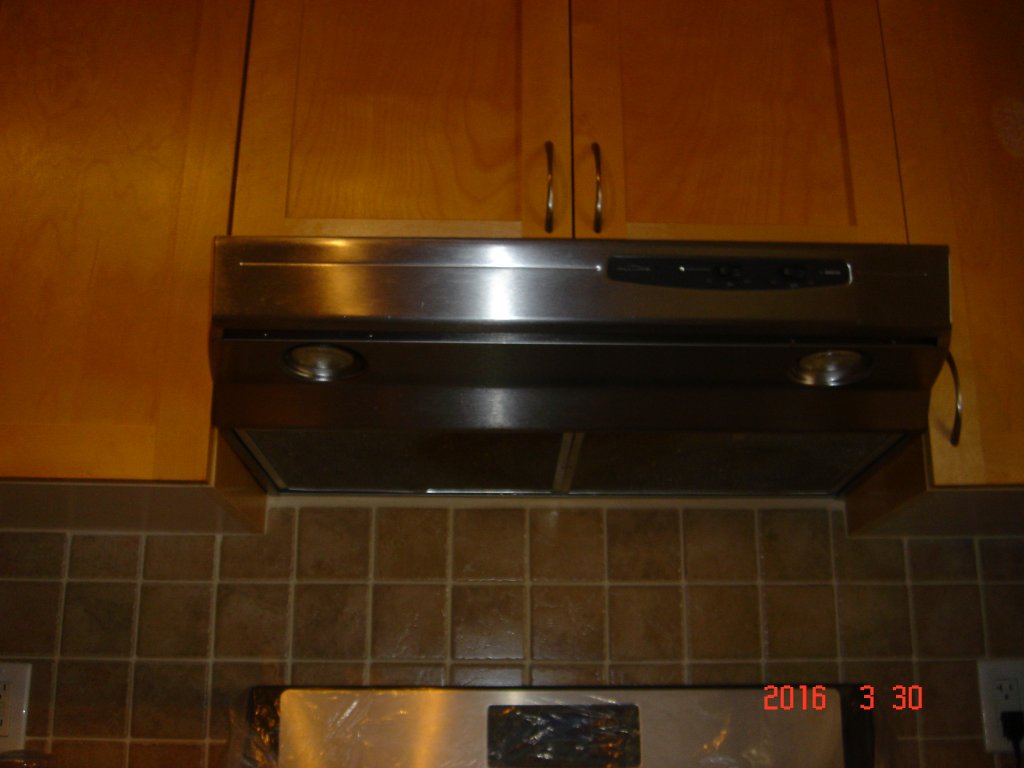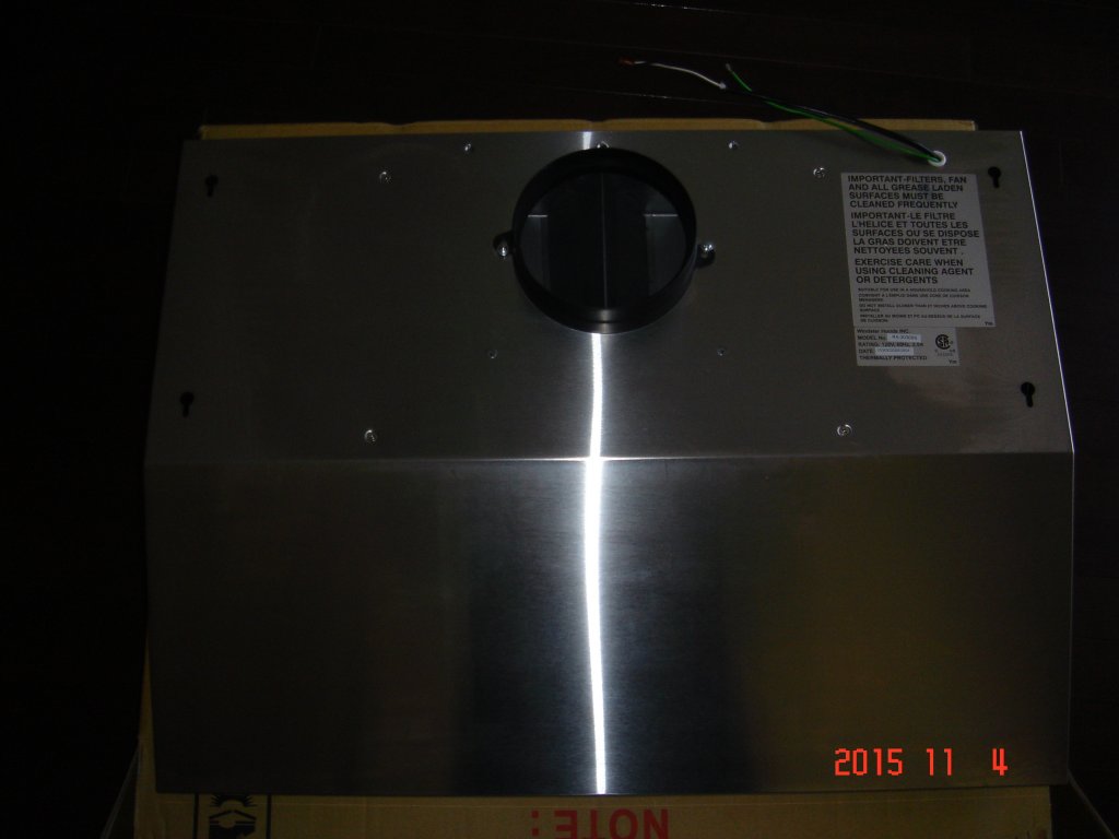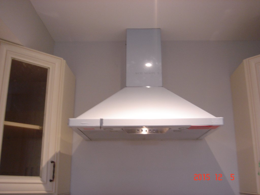 新安装的抽油烟机图片。这个安装更换了全部排风管道。