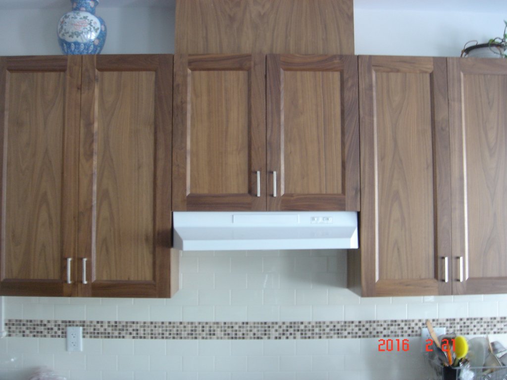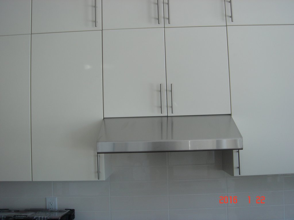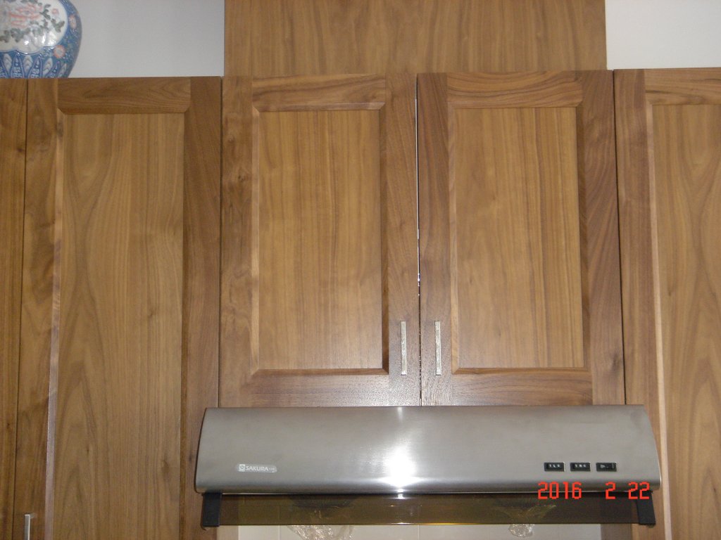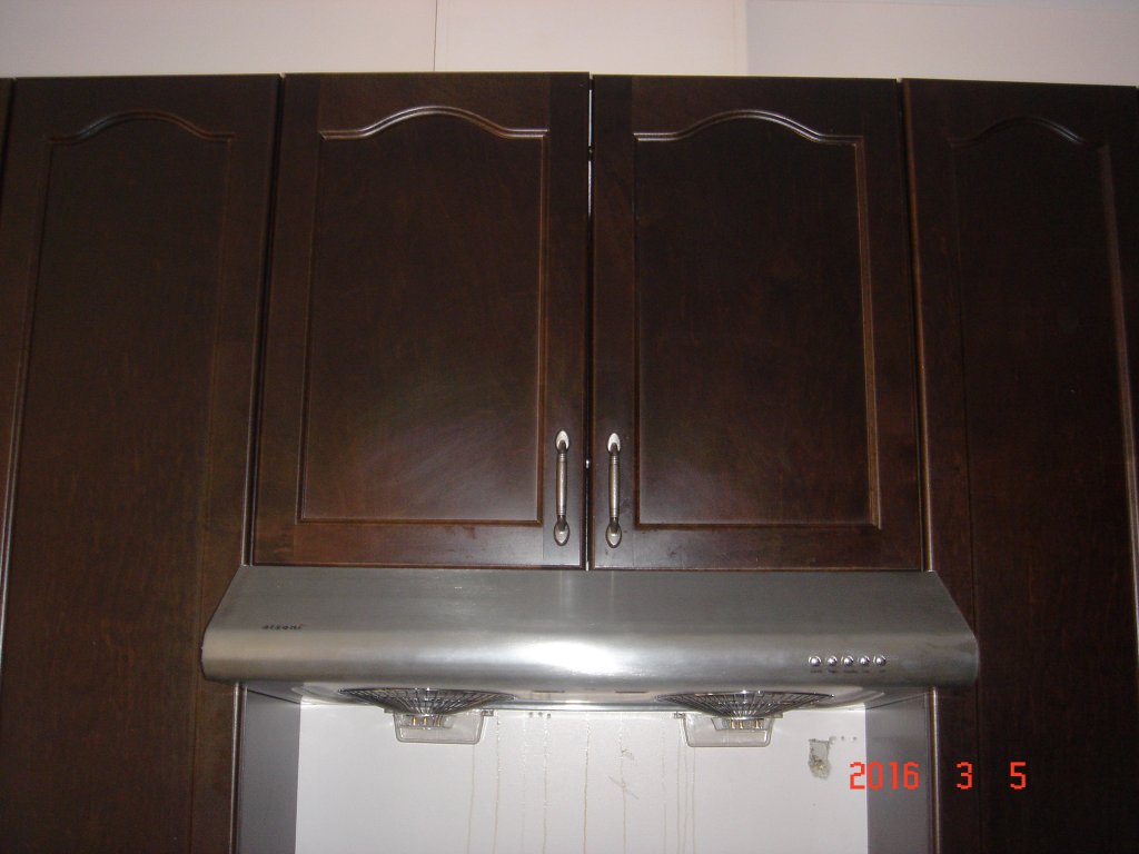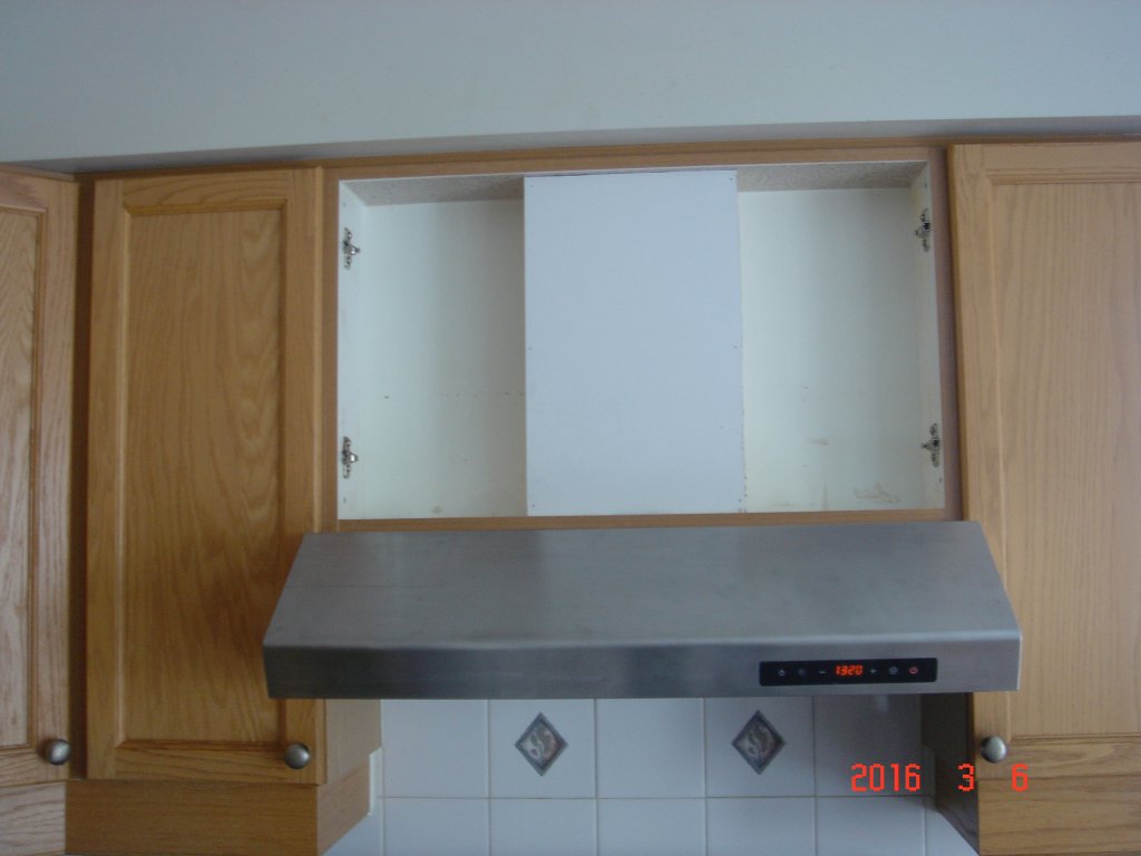 今天施工了一款难度相当大的油烟机安装,油烟机排风出口8英寸,管道入口4英寸,有高度要求,而且前面还有橱子,要在这样的情况下安装好,而且不能影响橱子的使用,施工用了4个多小时,终于安装好了,达到了用户的要求。见附图。