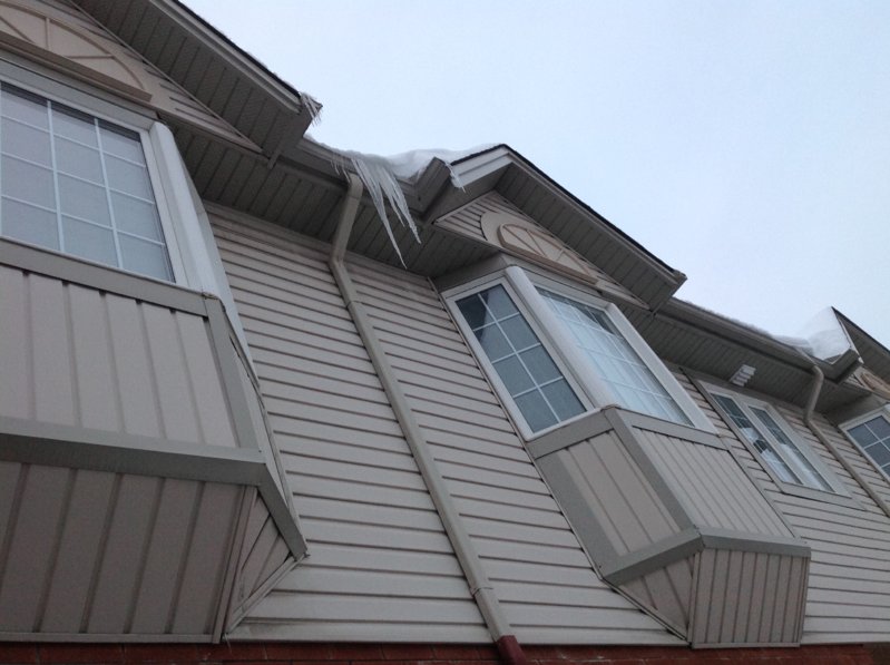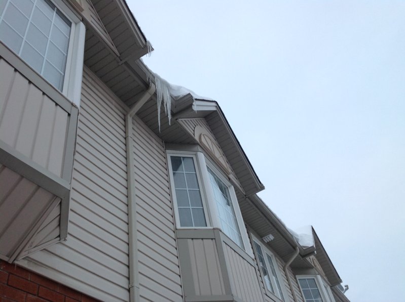 我家是town house结构, 今年九月份和邻居一起换了屋顶。昨天冰雨过后,发现两家屋顶连接处有一些冰柱子。邻居家的冰柱子长一些,我们的短一些。问一下大家这是不是因为屋顶没有换好,需要打电话叫他们来修吗?