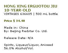 哦,我说嘛,怪不得红二更贵,这个是10年的。能引进普通二锅头更好,把价格降下来。 这个10年红二和普通红二喝起来有差别么? 酒精度数是一样的啊。 ccc 说: 别扯别的。你去LCBO买两瓶红星二锅头,我用汾酒换。 浏览附件386364 浏览附件386365 点击展开...