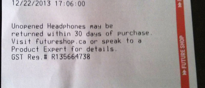 也不是什么都随便退货的。比如,在futureshop, bestbuy, 耳机headphone,earphone等只要你拆封就不能退了。
