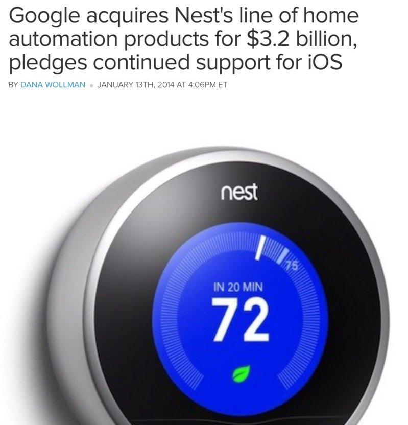 Nest的themostat用的是iOS. 也许以后会用android。我感觉google要的是人,google自己也在搞thermostat。实际这就是两个OS只争,iOS和android,谁以后应用多和广,谁的用户就多。打广告是终极结果。