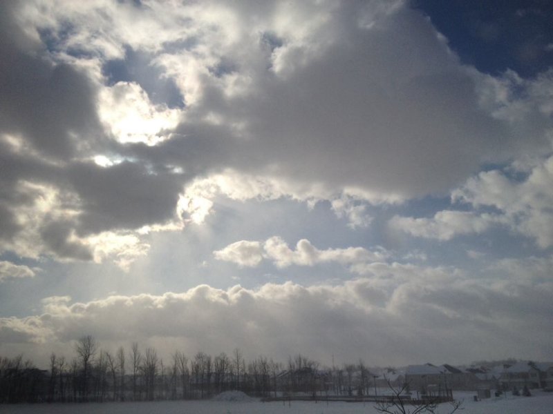 今天的云很特别,大团大团的,蓬松而洁白,且气势汹涌。冬天的天空出现了夏天的云,奇怪吧?