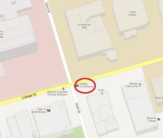 1. Sunday Feb 2nd, 5:00 pm in the intersection of Huron and College Street (downtown Toronto, close to University of Toronto). Please note I will be standing in front of the College Variety convenience store, which is on the south side of college street.