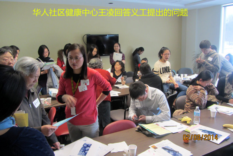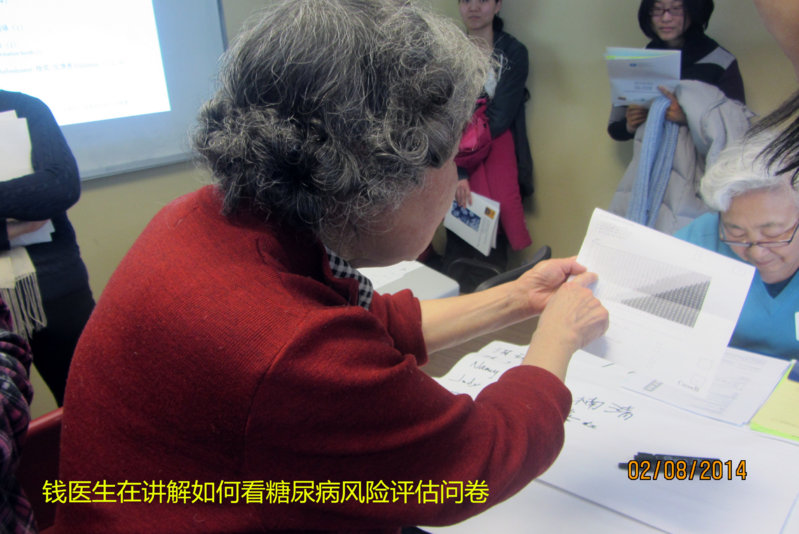 为了做好2月23日的华人社区糖尿病普查活动,社区健康中心和海老会招了44名义工,并于2月8日在西区资源中心进行了培训。社区健康中心王凌女士主持,海老会主席钱医生向义工们宣讲了“二型糖尿病的成因、症状和并发症”,以及如何降低糖尿病的风险?接着王凌女士宣讲了这次糖尿病普查的目的:1,为大家提供有关糖尿病知识的中文资料和材料;2,让高危群体更好的了解糖尿病和其它慢性病的风险;3,为高危群体和医疗系统工作人员提供在线网络讯息和工具;4,促进社区和医疗系统的合作关系---等。王凌女士还向义工们介绍了这次糖尿病普查活动流程和义工的分组任务:接待和注册组;身体质量指数(BMI)和体重、身高、腰围的测量组;糖尿病风险评估组;糖尿病风险评估累计分数组;高危人士做血糖检查;转介绍到不同服务和项目;最后听糖尿病知识讲座。为了做好工作,义工们都认真听讲,听不懂之处立即提问。然后根据各人情况参加分组工作。最后王凌女士带领义工沿评估流程工作岗位走一遍,熟悉自已工作岗位在哪。