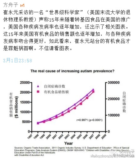 向问天 说: 赞崔永元是去调查并且把调查的内容都拿出来给人看的求实精神, 但是这个不是批评其他不这么做的人的理由,现在资讯这么发达,不是所有人都需要这样做。 点击展开... 其他人不这么做不需要批评,但是整天下大力气推销转基因的方舟子不这么做,说不过去。他打着科学的名义推销转基因的时候为什么没有真正把美国的事实完整地告诉大家?他为什么要刻意用一些夸大的甚至虚假的东西误导民众?