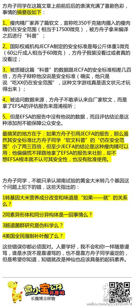 查了下瘦肉精的資料,我覺得上文是一個觀念混淆產生的誤會。有,如果你把方肘子算作科学家的话。