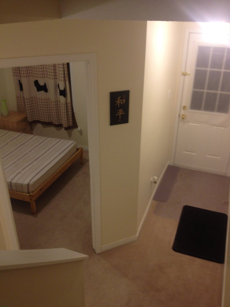 新盖townhouse一楼出租(不是地下室!),一房一卫二壁橱,干净,安静,整洁,有完全独立的私人空间,夏天可以直接从后门进出,后门通后院。提供家具。房东就一人,且只招一位房客。在Merivale最中心地段,开车5分钟或以内就可以到大统华,Costco,metro, future shop, Canadian Tire, Winners, Farm boy。。。附近有很多商店及餐馆,非常方便。600\month,包水,电,暖,空调(房主决不吝啬空调和暖气,保证夏天住的凉快,冬天住的暖和!)。欢迎单身,不抽烟,无宠物,安静,爱干净的有缘人入住。随时可以入住!