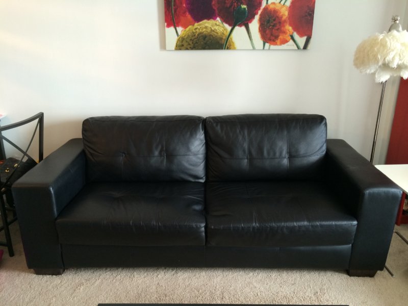 1. 皮质长沙发,购于Leon's,原价900,9新,正中间略有凹陷,无其他缺损,现$200转 SOLD