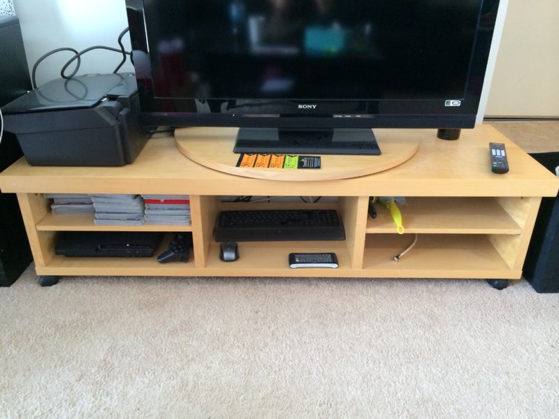 2. 原木色电视柜,85新,无缺损,底下有滑轮,电视板可转动,现$35转 SOLD