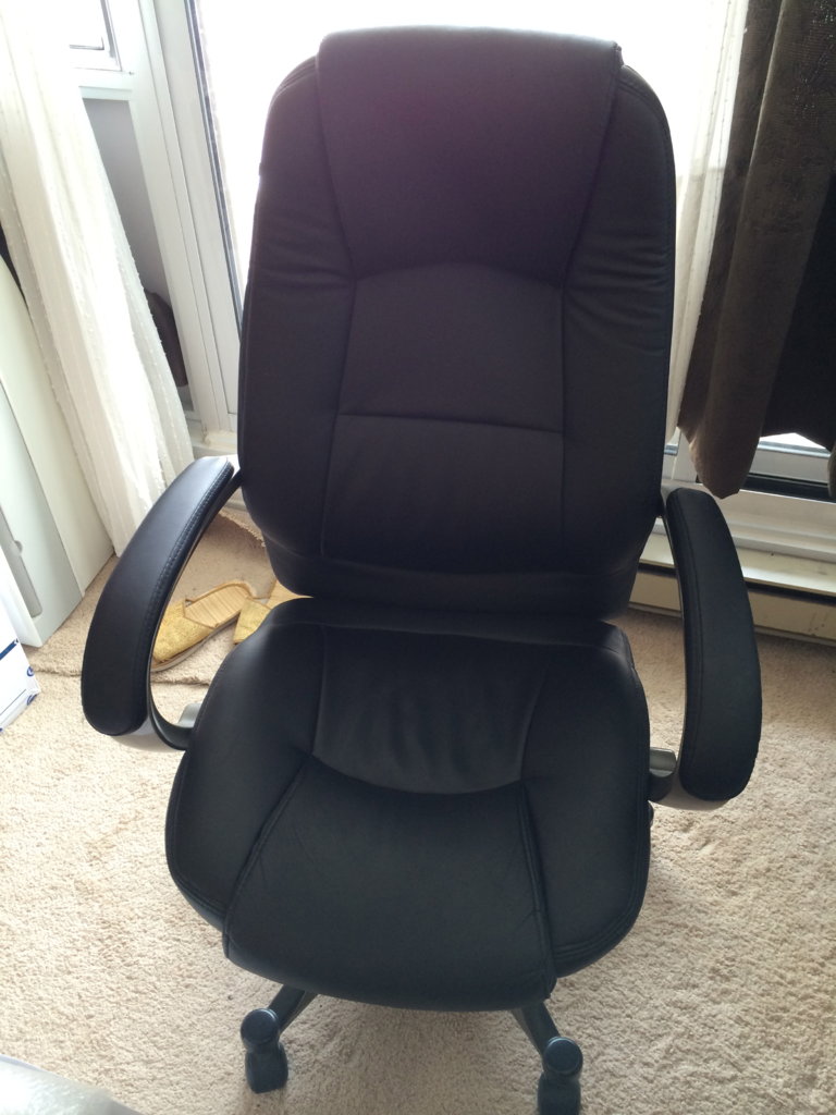 3. 黑色皮质电脑椅,购于staples,原价$180,9新,其中一个手臂有小晃动,不影响使用,无其他缺损,现$55转 SOLD