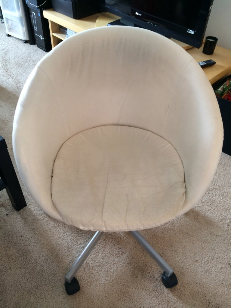 10. 白色皮质圆形电脑椅,购于ikea,$10甩