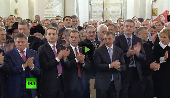 【环球网报道记者翟潞曼】据俄新社、俄罗斯《论据与事实报》3月18日消息,美国因俄罗斯支持克里米亚独立,对数名俄罗斯议员实施制裁。为此,俄国家杜马议员发表一份声明,建议美国也对他们实施制裁,并为被制裁的同事鼓掌。