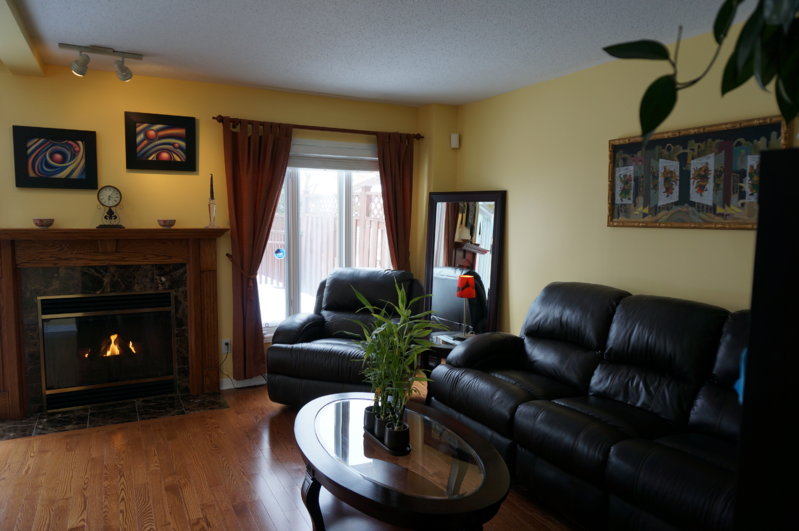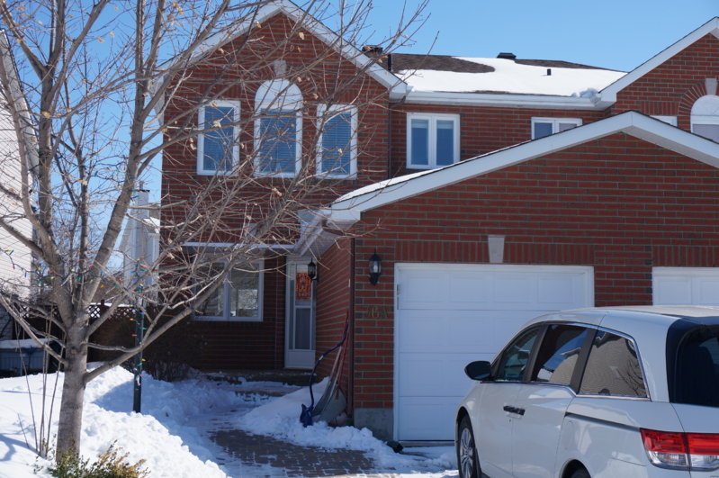 1997 built Two stories semi-detached with garage and fire place in a nice quiet neighborhood. 2 and half bath rooms, air conditioned and central vacuum. 4 bed rooms with huge master bedroom with ensuite. Brand new furnace and hot water tank. Basement fully finished. Big yard with two sheds. All services by foot including primary and secondary schools, parks, bus and train station. 10 minutes from T&T, 5 from Costco and 20 from downtown Ottawa. All appliances included. Four car parking possible. Sell price $349,900.