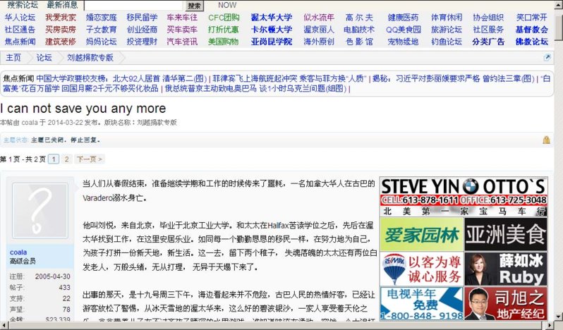 给大家提个醒,这个 lvusf 绝不是一个善主 !他是来者不善、善者不来 !他绝不同于一般的CFCers,可能是仇家,请大家小心和他保持距离。