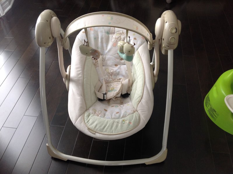 所有东西买了不到一年,价格如下: 绿色座椅$25刀,全新 秋千椅$40刀,用的很少,送电池 Maxi cosi Stroller $200刀,原价去年8月底买的(很新),收据为证且在一年保修期内, 买stroller送睡篮或单买睡篮$15刀。 有意者发消息或电话6135190636
