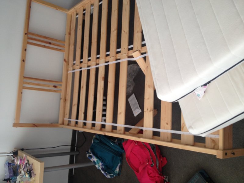 1. IKEA 床架FJELLSE,double size,床架完好,床板的左边第四根断了,睡觉完全没有不舒服的感觉,现在便宜卖了。(原价112,现价40) IKEA床垫SULTAN FIDJETUN(原价168,现价65)
