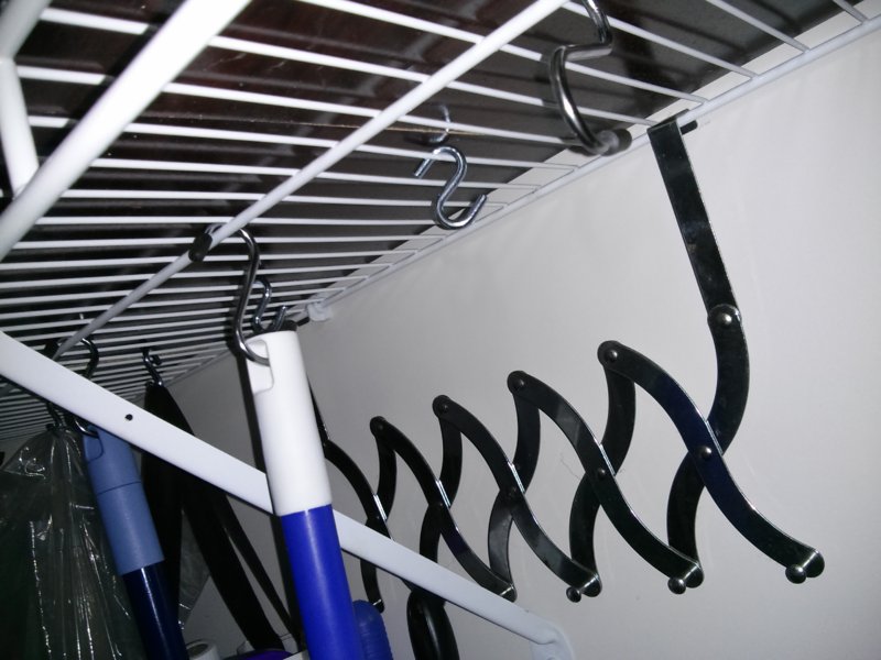 练习上图,我家用途不同,挂包横许也行,贴墙的是ikea的货,并不实用,挂在shelf的s挂钩,物美价廉,沃尔玛和所有五金百货店