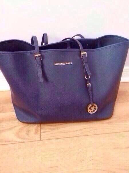 Mk 包 深蓝色! navy blue jet set travel tote! 大的 2012年christmas 买的,都没打折! 买回来不常用!没有任何水印或磨损.包包9成新!袋子,发票都还在,原价+tax $333! 现在卖$200