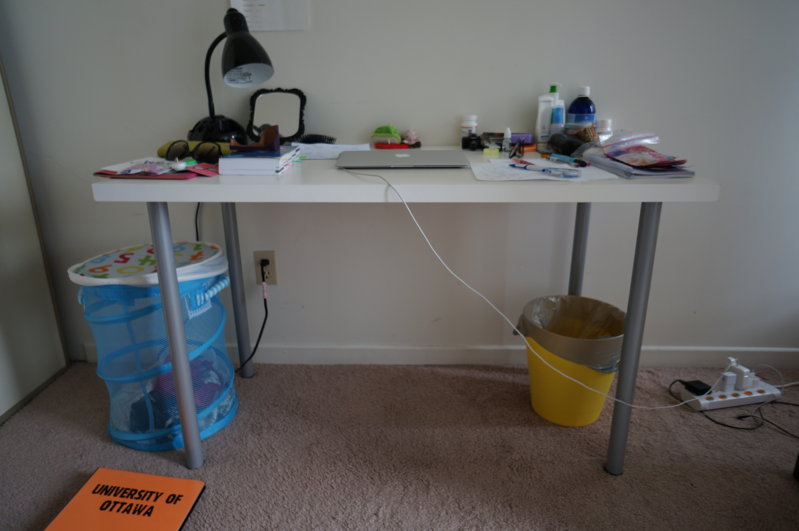 1. 桌子:大家最常用的内种 面板和四条腿拼起来的内种 我的面板是中大号的 15刀 2. 简易衣橱:沃尔玛买的 简易拆装的 容量蛮大的 10刀 3. 桌面收纳台灯:带桌面收纳功能还有一个两座插孔 5刀 详情见图片 有需要直接联系吧 6132558750