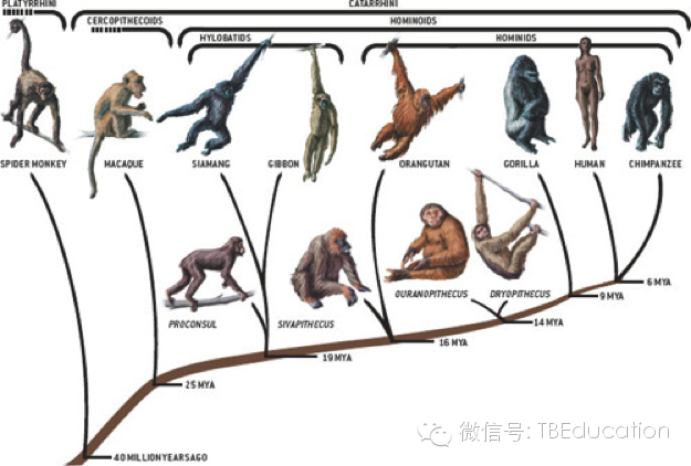 迄今我们了解到的人猿的树状谱系