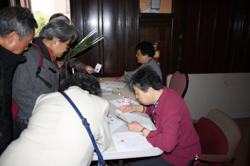 2014.5.14.上午渥太华华人社区服务中心假加华文化中心剧场,召开“老有所依”之“母亲节”茶话会,邀请60岁以上老人参加,原设想开一个50至80人的茶话会,没想到报名人数倍增,达到195人,气氛热烈。入口签到处,华人社区服务中心献给每位母亲鲜花一束。会场里,挂着“母亲节快乐!”横幅,主席台两边摆着两篮鲜花,朋友们握手言欢,呈现一派洋洋喜气!
