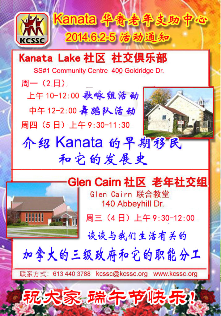 2. Kanata社区菜园已经有水了。想要租菜圃的老年朋友请联系kcssc.kcssc.org或联系 613-440-3788。烦请有菜苗的朋友多多提供菜苗,KCSSC专属的菜圃将一起种植,一起收成,一起分享,并分送至食物银行。