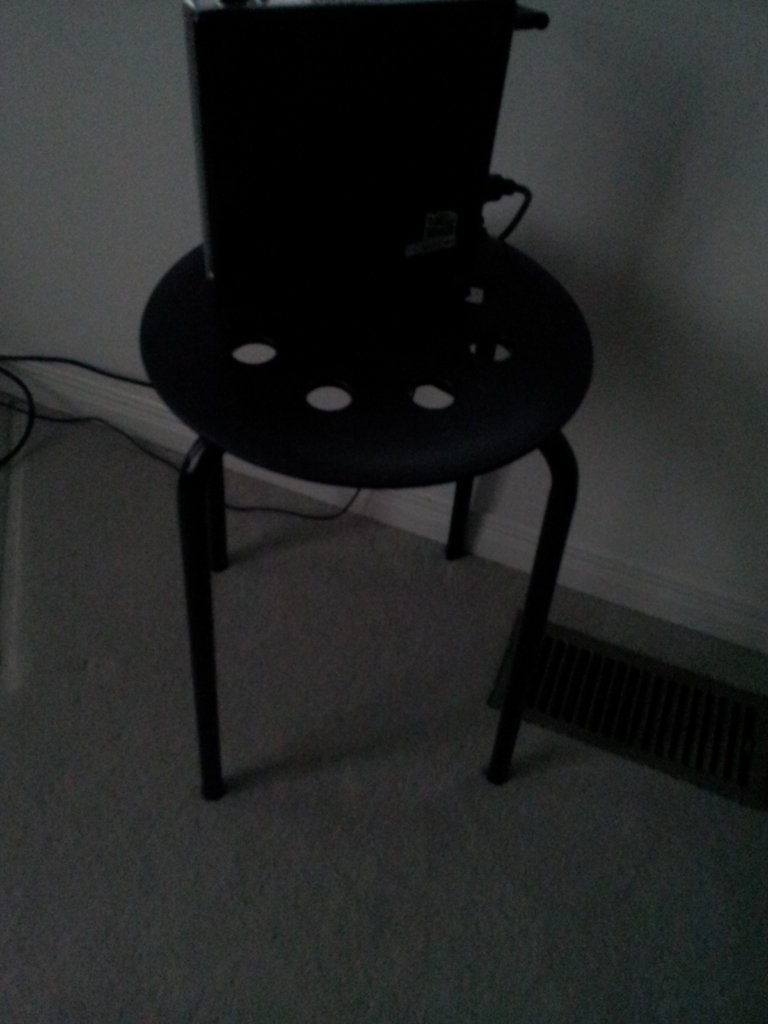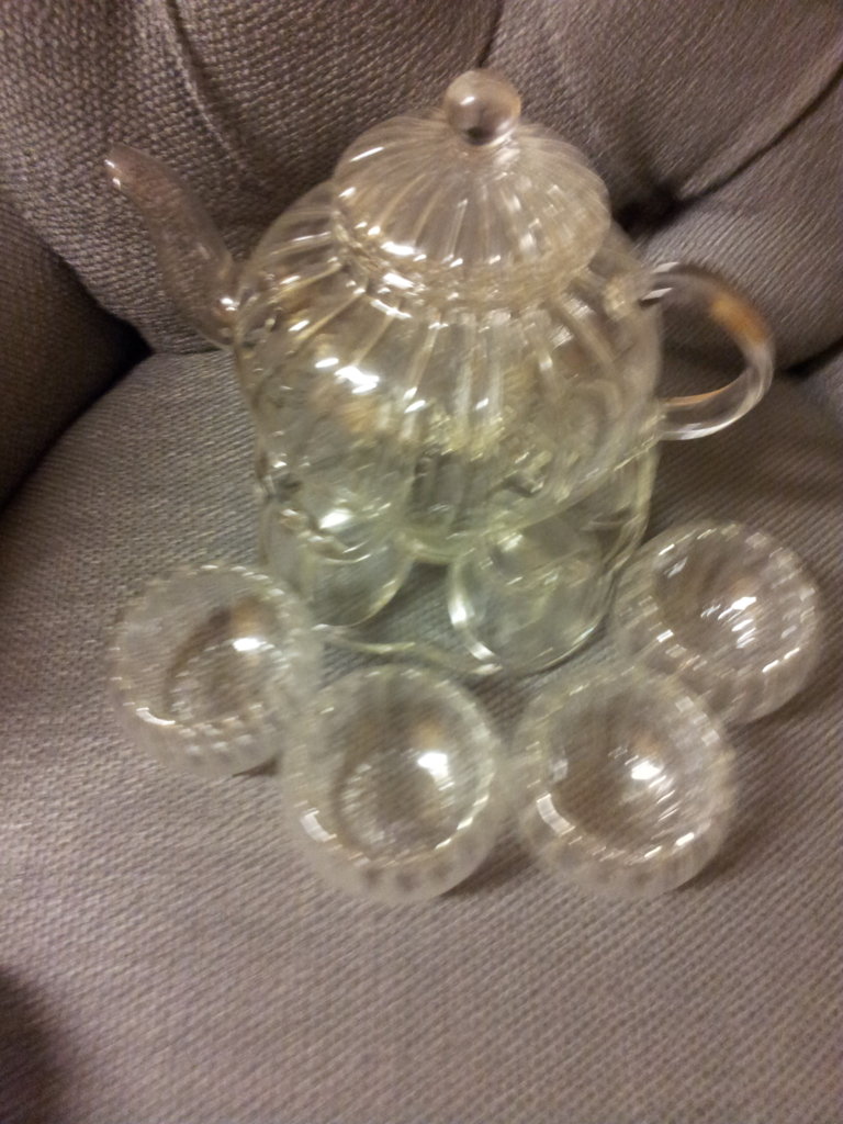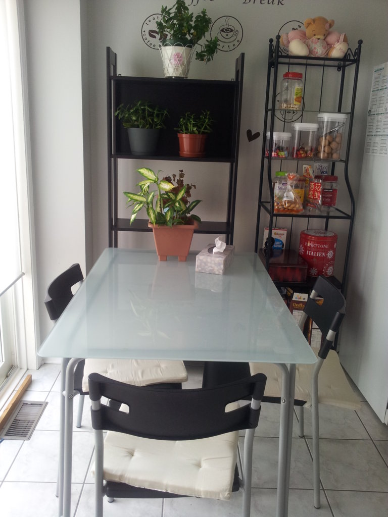 玻璃小餐桌和四张椅子(三个黑色,一个白色椅)35