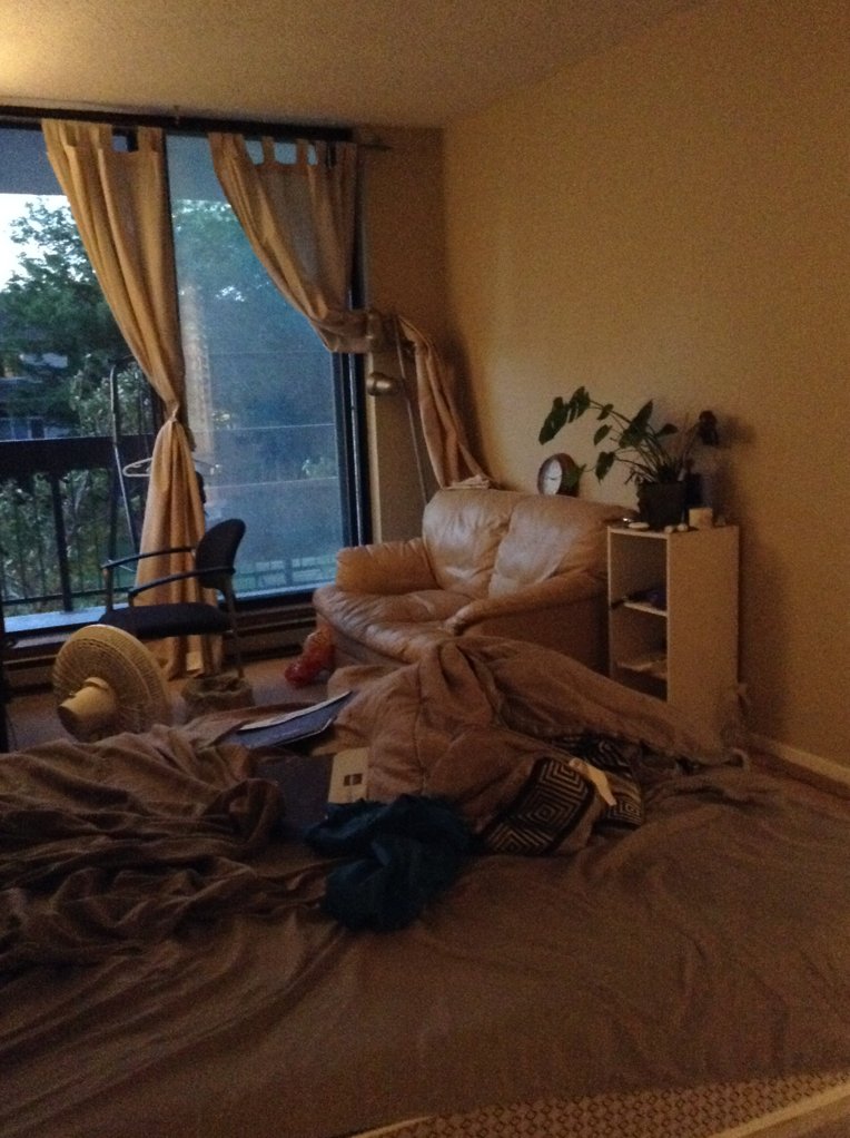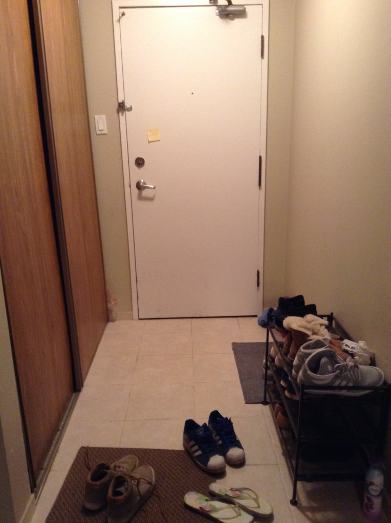房间环境: 整个公寓都很干净很大,有储藏间, 除了客厅以外还有一个很大的公共空间(家在2楼,方便安全)。 客厅很大如图,和厨房不相对,已经用厚窗帘隔开没有厨房味道 (不带家具,但是附赠一个大衣柜)跟客厅相连的阳台不公用你可以随便晾衣服放杂物都可以。我和两个室友都是女孩,平时上课晚上回家很安静也不开party不吸烟