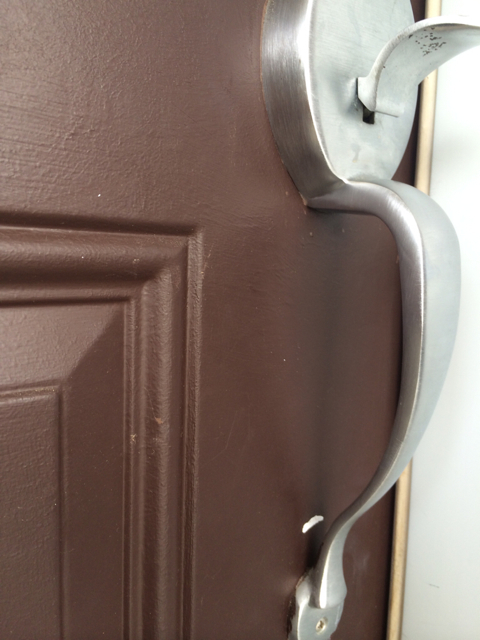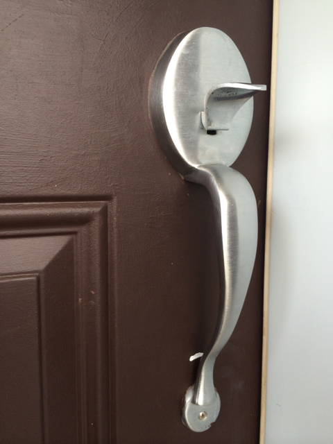 今天下午回家,用钥匙开门的时候,赫然发现大门扶手里面有人用油漆画了一条白色短线。