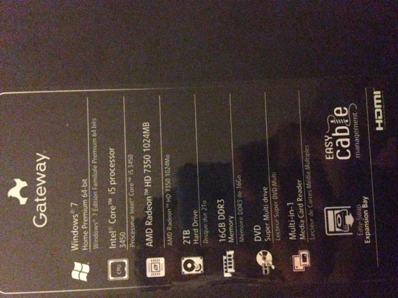 Gateway Gateway DX48 Core i5 3.1Ghz 16GB 2TB ATI HD7350 W7 Deskt