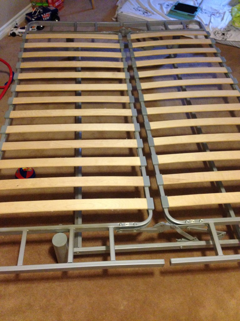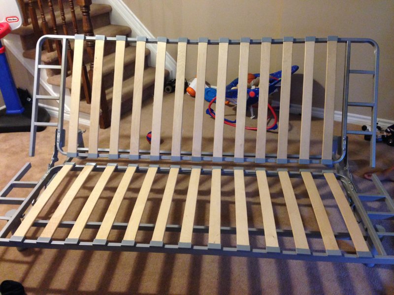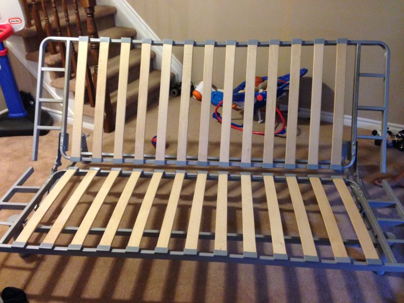 Convertible Futon (沙发床) 钢架,木板面,以及舒服的垫子,可以作长椅或者床(可调节),床垫和罩子照片还没照。特别适合留学生!