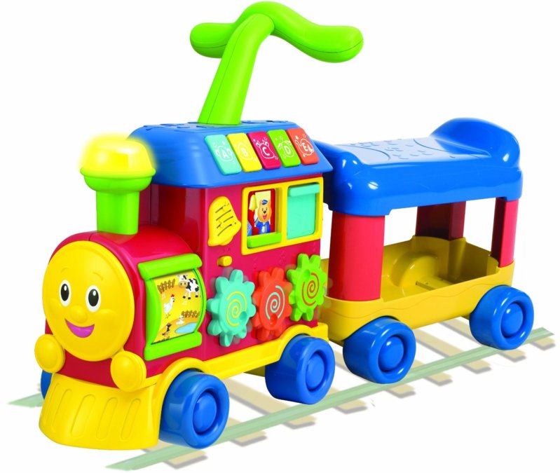 Light up train engine teaches A-E letter identification.-Attachable trailer makes a ride on vehicle.-Comes with flashing lights, cheerful melodies and fun sounds.-Remove the trails and push the train from behind.-For ages 12 months and up. Specifications: -Grow with me train has 3 levels of play. Dimensions: -18.11'' H x 8.27'' W x 27.95'' D, 4.97 lbs.