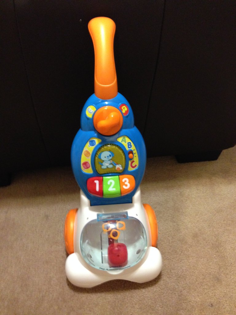 Your baby can clean up and count their way to learning fun with the Vtech Pop & Count Vacuum! This little educational toy vacuum easily glides across the floor to pick up its colored blocks that have been left about. As each block is picked up, the vacuum responds with fun sounds as the blocks bounce around inside. Three number buttons and light-up puppy character button reinforce learning as your toddler plays with this electronic learning toy.
