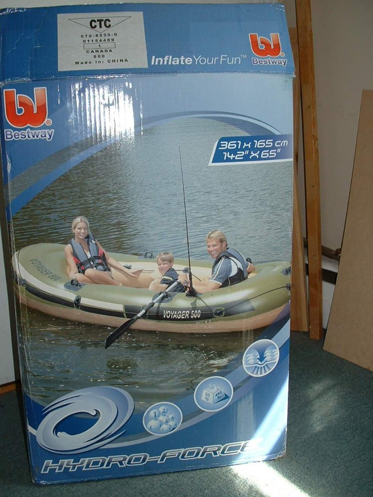 Inflatable boat for 4 persons, only used once, looks like new, $100