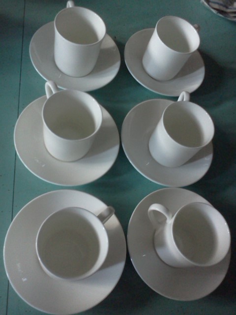 A set of tea cups, made of white bone china, $ 15