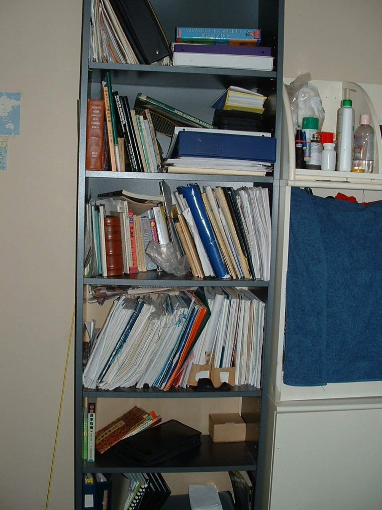 Dark greybookcase, 2 meters height, 6- self, space adjustable, looks like new, each $20