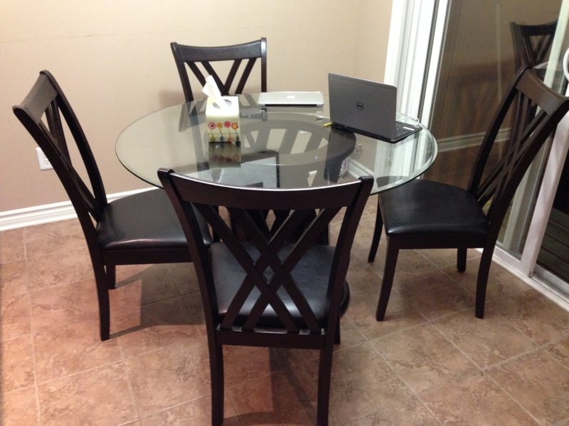3. 木质玻璃面餐桌 + 4条棕色椅子, 2012年1月购买,维护良好,原价约$600, 只卖 $250.