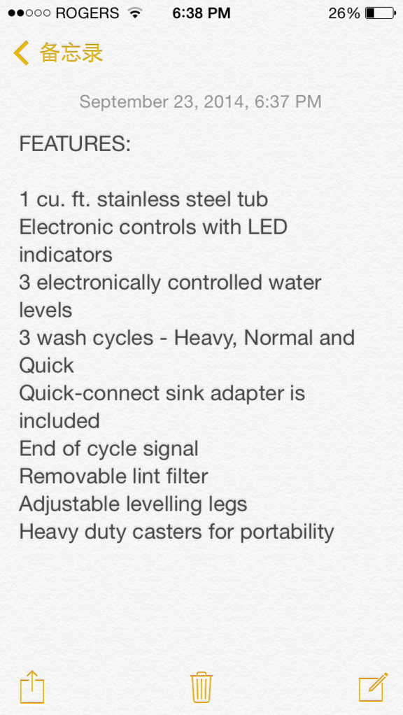 心太细 知名会员 注册 2003-11-06 消息 749 荣誉分数 6 声望点数 178 2014-10-27 #1 比较新,只洗过宝宝衣服,适合公寓用。买时候299.99加税在future shop. 现在卖180,包送货,有意者发邮件luoshawn@hotmail.com 附件 $_20 (10).JPG 31.4 KB · 查看: 69 $_20 (11).JPG 37.4 KB · 查看: 64 $_20 (12).JPG 18.8 KB · 查看: 78 IMG_7323.PNG 439.8 KB · 查看: 76