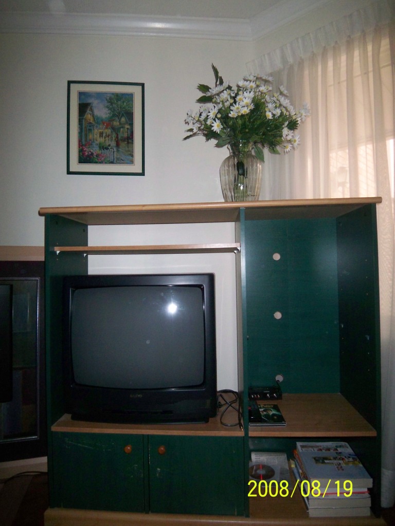 4。电视柜:$20 并送墙上的画,电视机25 寸,free. 放地下室N多年了。